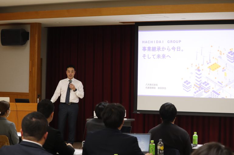 参加者の皆様に、事業承継から今日に至るまでのプロセス、今後のビジョンなどをヒストリー形式で熱く解説しました。皆様とても熱心に聞き入っておられました。